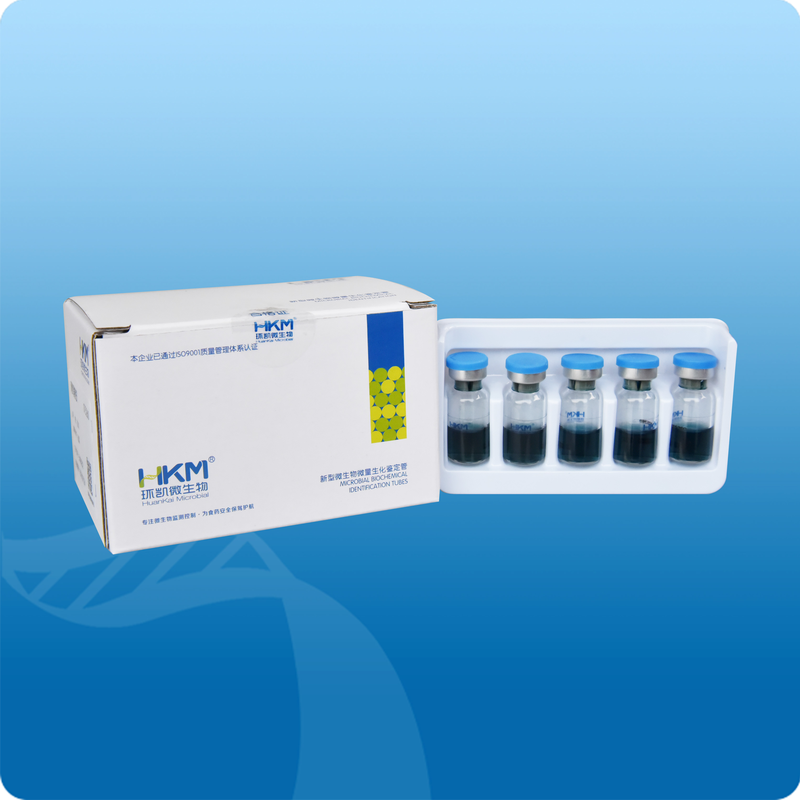 挑取待检菌落进行革兰氏染色镜检,将新鲜菌苔接种于普通肉汤中37℃培养18-24h或用0.85%无菌生理盐水稀释至0.5McFa-rland (约108cfu/mL), 各吸取0.05-0.08mL(约1~2滴)的肉汤培养物或菌悬液加入每种微量西林瓶内。将已接种的西林瓶再套上胶塞,一般采用全加塞(如图2左两瓶所示),特殊情况在下表注明采用半加塞(如图2右两瓶所示),直立于内托的凹槽内(如图2),或放置于合适的瓶架中,于35-37℃培养箱中培养,结果观察见下表1。注意:如有特殊的接种方式、培养时间或培养方式,请详见每种生化鉴定管附带的使用说明。