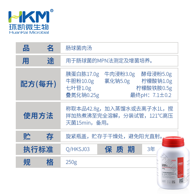 028960 肠球菌肉汤培养基 250g/瓶(粪链球菌(肠球菌)检验检测常用培养基):