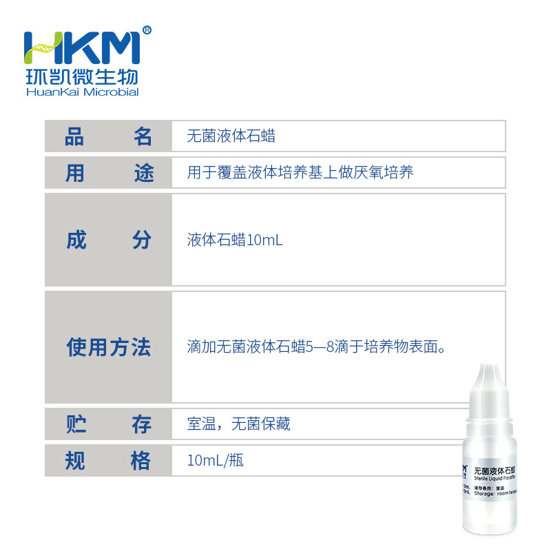 使用方法:滴加无菌液体石蜡5-8滴覆盖培养基表面。