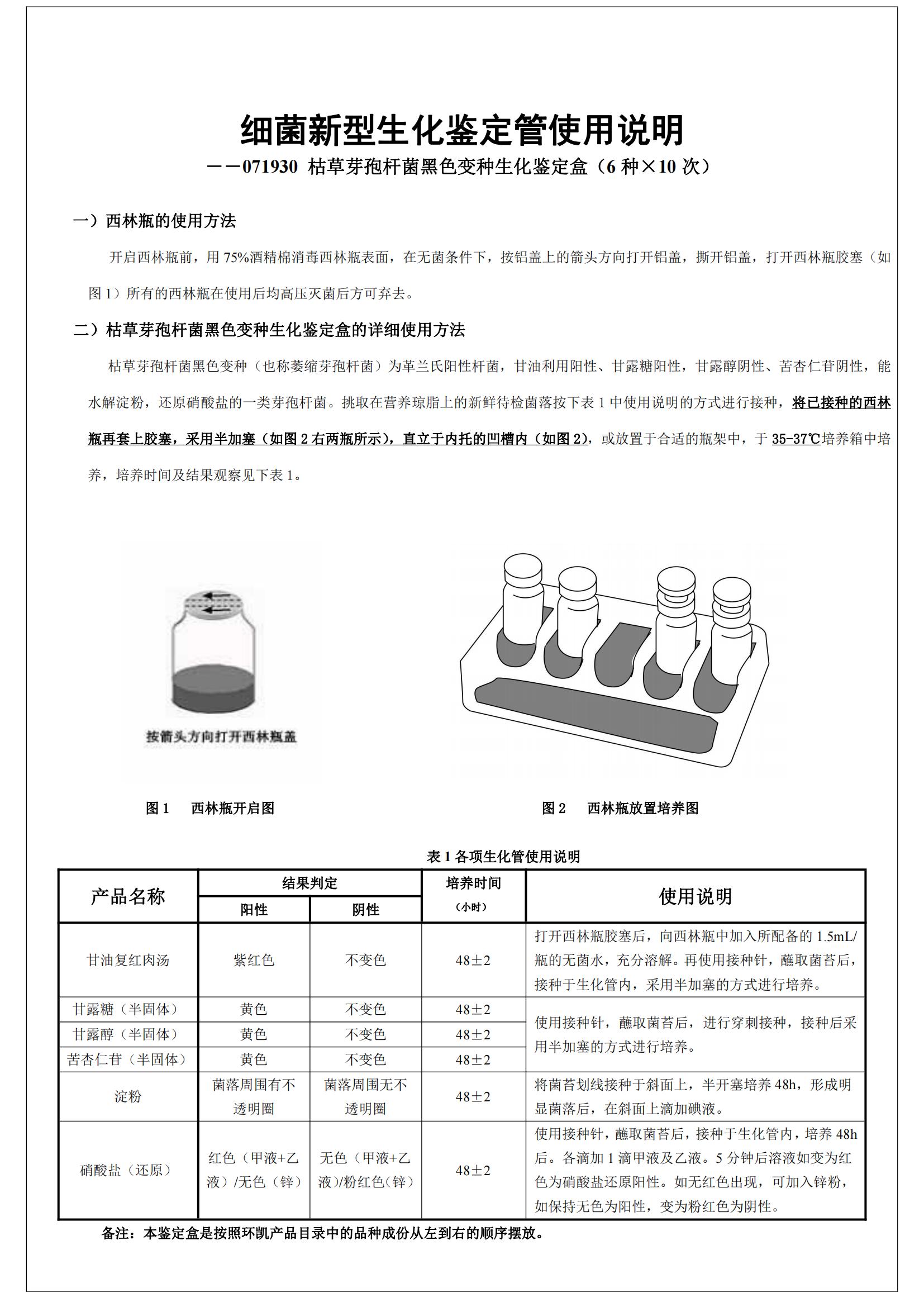 071930 枯草芽孢杆菌黑色变种生化鉴定盒 产品使用说明书