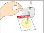2;将测试片放在水平台面上,揭开覆膜,将 1mL 样品液滴加在纸片中心。 |