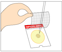 2;将测试片放在水平台面上,揭开覆膜,用 1μl 接种环取增菌液在纸片上划线分离。 |