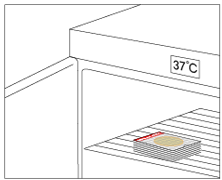 4;将测试片正面朝上,放置于恒温培养箱中,36±1℃培养 18~24h。测试片堆叠不应超过 20 张。 |